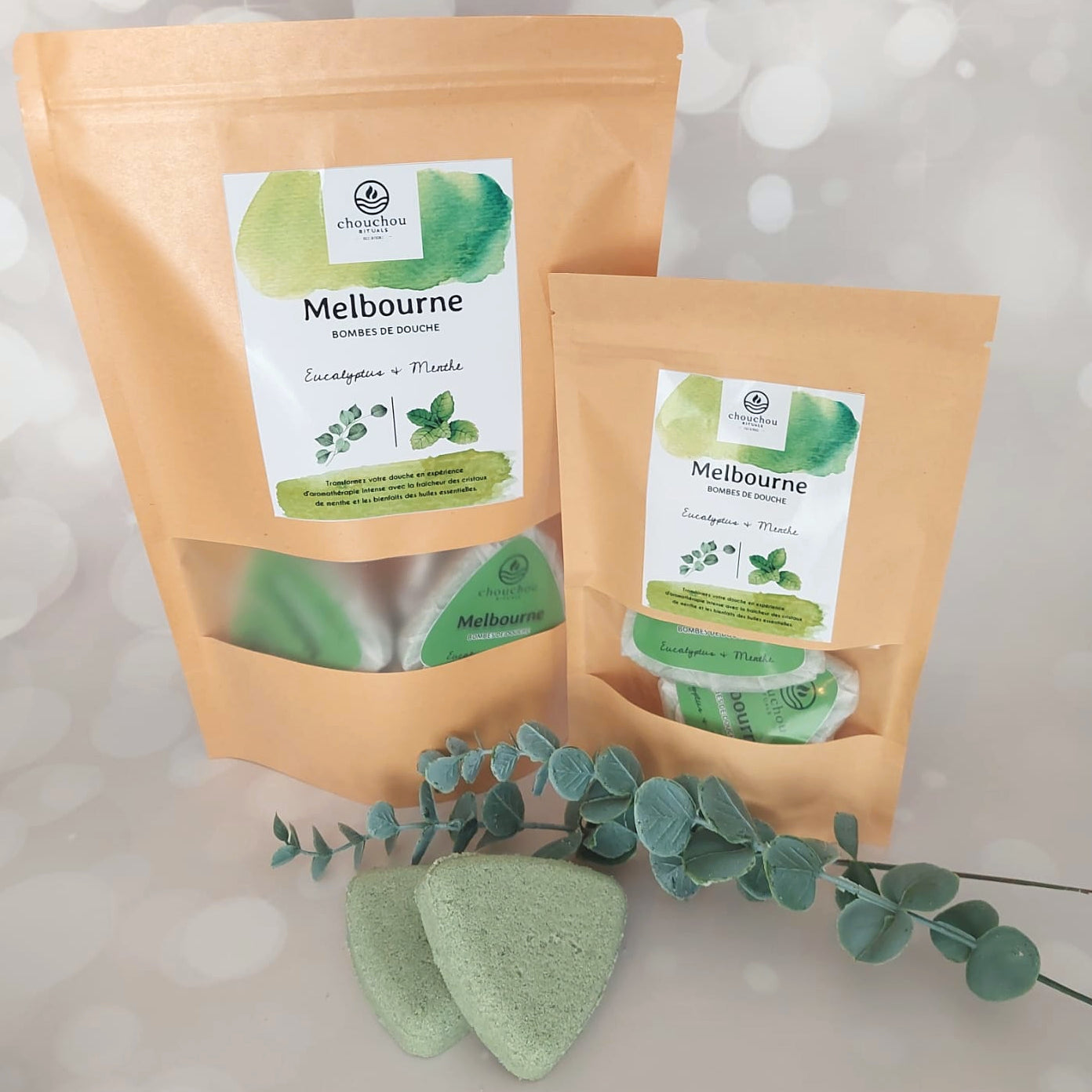 Respirez profondément et sentez la différence avec notre Bombe de Douche Melbourne. Grâce à ses huiles essentielles d'eucalyptus et de menthe, combinées à des cristaux de menthol, elle libère une vapeur fraîche et purifiante, idéale pour désencombrer les voies respiratoires et retrouver une sensation de clarté.