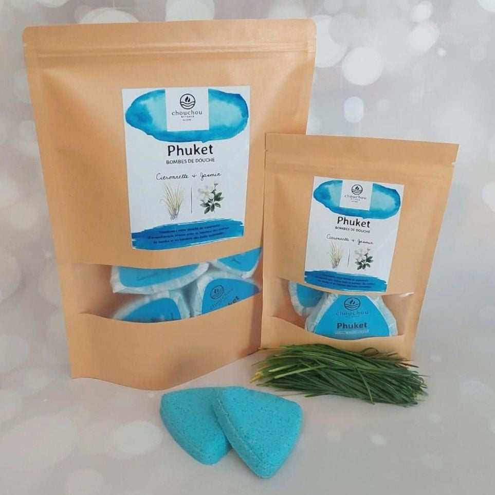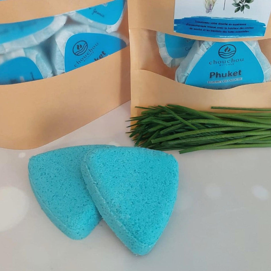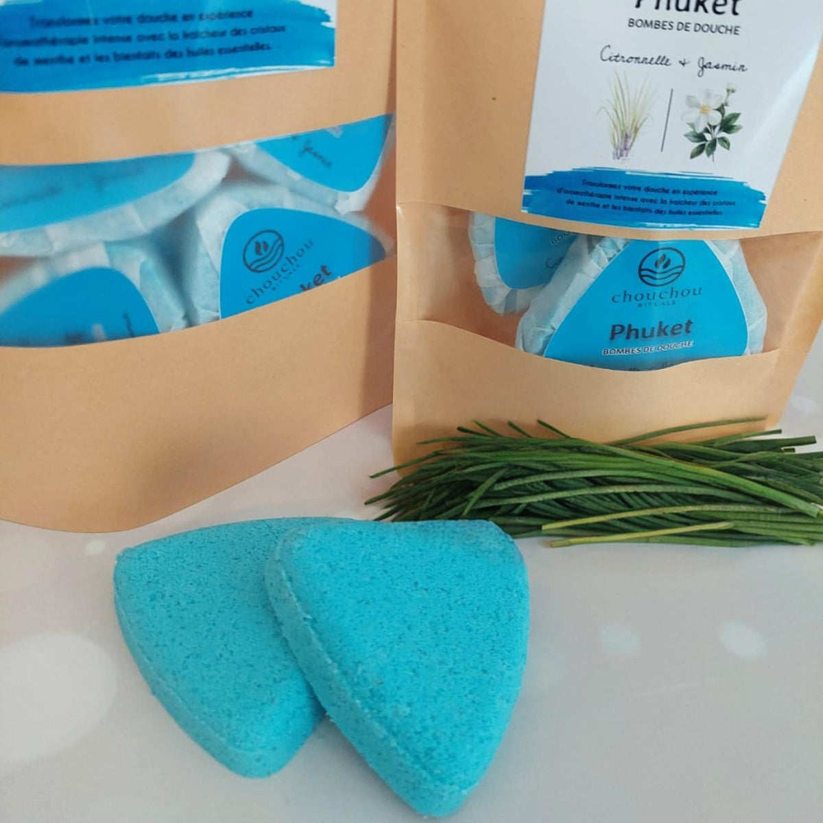 Évadez-vous dans l'univers relaxant des spas thaïlandais grâce à notre bombe de douche Phuket. Un mariage harmonieux d'huiles essentielles de lemongrass et de jasmin, renforcé par la fraîcheur cristalline des cristaux de menthol. Sa fragrance envoûtante évoque les massages apaisants et les rituels ancestraux de bien-être. Une expérience luxueuse qui transforme chaque douche en un moment de pur lâcher-prise. Parfait pour se ressourcer et apaiser l'esprit, comme si vous étiez en vacances à Phuket.