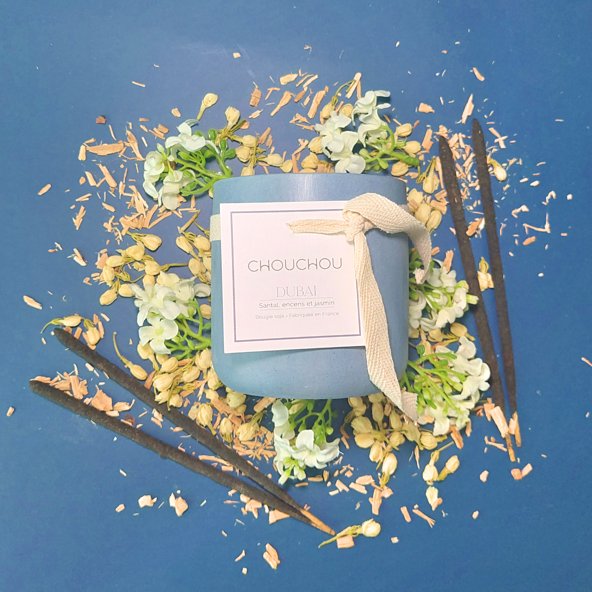 Plongez dans l'opulence et le mystère des nuits orientales avec notre bougie Chouchou parfum Dubai. Ses notes envoûtantes d'encens vous transportent au cœur des souks parfumés, où flotte un air de mystique et de luxe. Le santal, riche et terreux, ajoute une profondeur boisée qui apaise l'esprit, tandis que le jasmin, délicat et sensuel, caresse l'air avec une élégance florale envoûtante. Allumez cette bougie et laissez la magie de Dubaï, ville des mille et une nuits, envahir votre espace avec une atmosphère de raffinement et d'évasion. Un véritable voyage olfactif.